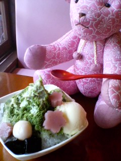 桜寒天までのって、贅沢なカキ氷が出来たクマ。