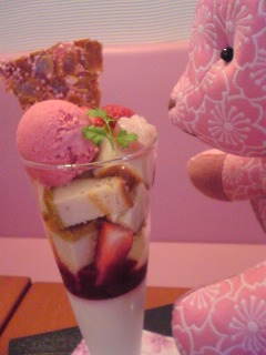 その名の通り、桜が満開のイメージのパフェなんだクマ~