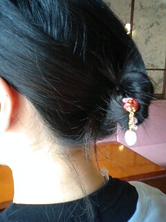 毛束の上にかんざしを乗せて、くるくるっと髪を巻きつけ差し込むだけで